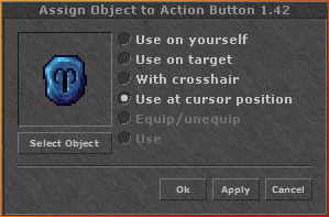 esteja sob o cursor do mouse na janela do jogo ao pressionar a tecla de atalho. Isso reduz o número de cliques necessários de dois para um. A opção pode ser selecionada enquanto você arrasta o objeto na action bar.