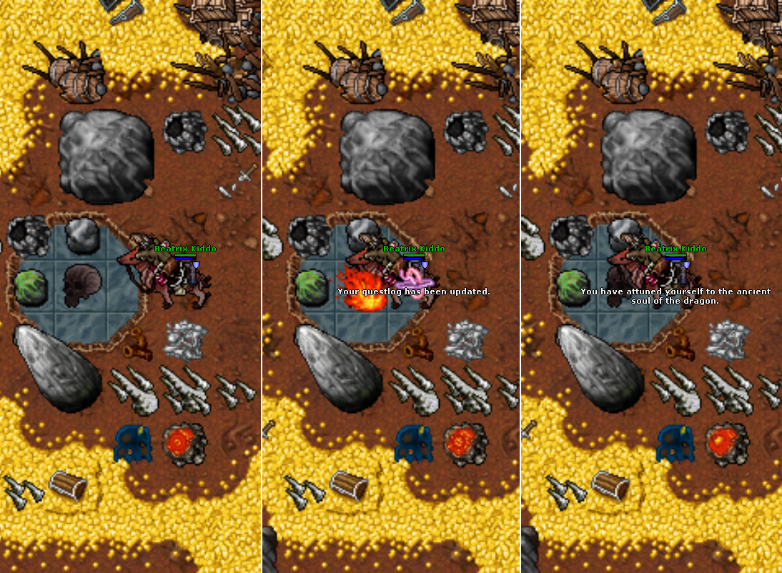 - O Jade Dragon Head que você recebeu do NPC S’Zallar M’Andar precisa estar no seu inventário durante todas as batalhas com os bosses!